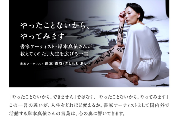 また近年は、紙の上にとどまらず、身体や空間に書く表現へと領域を拡張。国内外でのショーや作品制作など、表現の可能性を広げ続けている。AIやデジタルが進む時代だからこそ、人が自分の内側に触れ、